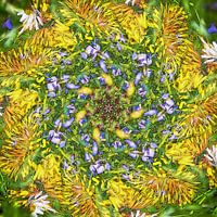 Dit digitale kunstwerk begon zijn bestaan als een lentefoto van een grasveld met madeliefjes, paardenbloemen en hondsdraf. Door die foto zeven keer te kopieren en iedere kopie als een transparante laag in Photoshop 51,42 graden te draaien ten opzichte van de onderliggende, ontstond dit beeld. Klinkt ingewikkeld maar het belangrijkste is…