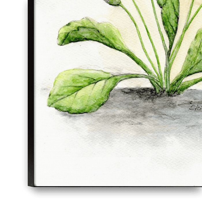 Het motief van deze aquarel toont een delicaat madeliefje in zachte tinten.
