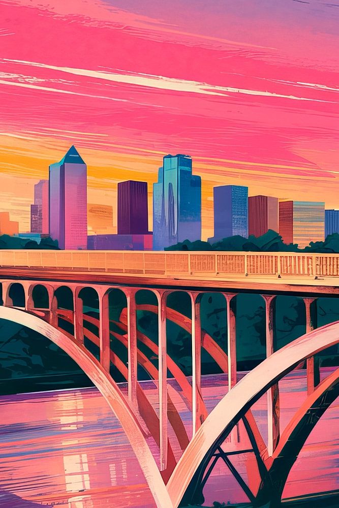 Een boeiend samenspel van felle kleuren en dynamische vormen legt de levendige stad Dallas vast. De elegante brug trekt de aandacht, omringd door een prachtige zonsondergang die de scène tot leven brengt. Dit kunstwerk is perfect voor in de woonkamer, voegt een moderne, urbanistische touch toe aan elke kamer en moedigt aan tot dagdromen.