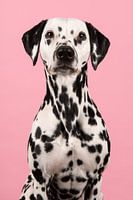Portret van een Dalmatiër hond tegen een roze achtergrond