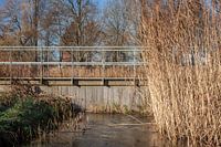 Dam in riviertje. De dam is gelijk een bruggetje waardoor men het natuurgebied kan bereiken.