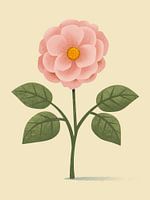 Een minimalistische illustratie van de Damascenerroos (Rosa damascena), een bloem die bekend staat om haar verfijnde geur, historische betekenis en sierlijke uitstraling. De bloem is gestileerd weergegeven met zachte lijnen en een harmonieus kleurgebruik – een eigentijdse ode aan een klassieke schoonheid.