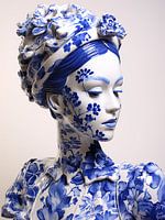Dit kunstwerk, getiteld "Dame in Delfts blauw," presenteert een elegante vrouwelijke figuur in een stijl die doet denken aan traditionele Delfts blauwe aardewerk. De combinatie van blauwe en witte tinten geeft het schilderij een klassieke en verfijnde uitstraling. De details in de kleding en de pose van de dame stralen een gevoel van charme en geschiedenis uit. De iconische Delfts blauwe patronen voegen een cultureel element toe, wat het werk zowel herkenbaar als artistiek maakt. Dit schilderij is perfect voor liefhebbers van Nederlandse kunst en kan een stijlvolle en nostalgische touch geven aan elke ruimte.
