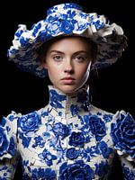 De afbeelding "Dame in Delfts Blauw" toont een elegante en verfijnde weergave van een vrouw, uitgevoerd in de klassieke stijl van Delfts blauw. De subtiele details en het iconische kleurenschema van wit en blauw geven het kunstwerk een tijdloze charme en een gevoel van culturele rijkdom. Dit digitaal gecreëerde kunstwerk is perfect voor het toevoegen van een stijlvolle en traditionele touch aan je interieur. Het is een prachtige keuze voor liefhebbers van Nederlandse kunst en cultuur, en het nodigt uit tot bewondering en contemplatie.
