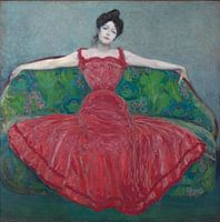 Dame in fuchsia jurk (gebaseerd op Dame in een gele desss - Dame im gelben Kleid), Max Kurzweil