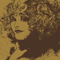 Dame in okergeel, een schilderij gebaseerd op kunstwerken van de Oude Meesters, door mij geherinterpreteerd in de huidige gouden, warme trendkleuren.