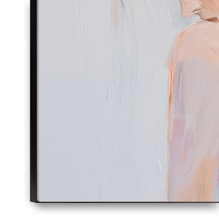 Dit impressionistische werk vangt de zachtheid en de subtiliteit van een vrouwelijk portret in pastelkleuren, waarbij het bovenlichaam van de vrouw met een gebogen hoofd wordt afgebeeld. De abstracte penseelstreken brengen een gevoel van introspectie en sereniteit over, waarbij de zachte overgang van kleuren een dromerige en emotionele…