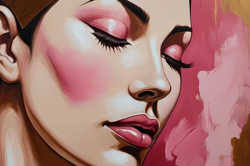 Deze moderne interpretatie van Art Nouveau brengt de klassieke schoonheid van Gustav Klimts werk naar de 21e eeuw. In dit portret is een serene vrouw afgebeeld met gesloten ogen, haar gouden hoofdband glinstert tegen een droomachtige achtergrond van roze en gouden tinten. De rijke kleuren en zachte lijnen creëren een sfeer van rust en reflectie. Het gebruik van goud voegt een vleugje luxe toe, terwijl de roze achtergrond zorgt voor een warme, uitnodigende gloed. Dit stuk zou een betoverende aanvulling zijn op elke moderne woonkamer of kantoor, waar het een atmosfeer van rust en inspiratie brengt.