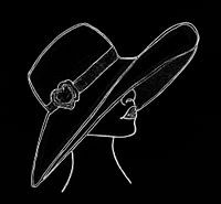 Een tekening gemaakt van een dame met grote hoed en deze digitaal bewerkt.