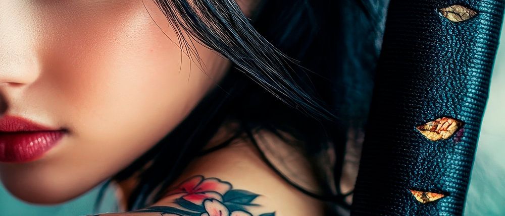 Deze sterke femme fatale met intense ogen en een starre aanwezigheid straalt zowel zachtheid als vastberadenheid uit. Haar sierlijke tatoeages vertellen verhalen, terwijl het zwaard achter haar voor een mysterieuze sfeer zorgt. Dit kunstwerk is ideaal voor een moderne woonkamer en voegt een opvallend, artistiek tintje toe aan elke kamer.