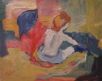 Dame die haar kniekousen aantrekt. Geïnspireerd op een werk van Henri de Toulouse-Lautrec. Een schitterend werk dat nergens misstaat.