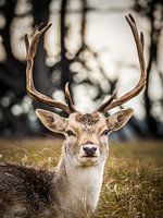 Een close-up van een damhert in de Amsterdamse Waterleidingduinen.