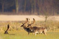 Een groep damherten (Dama dama) op een weiland in het natuurgebied Mönchbruch bij Frankfurt, Duitsland.