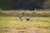 Deze mannetjes damherten liggen heerlijk in de zon in het gras, de wacht te houden over hun roedel. Op een nazomermiddag kom je deze prachtige dieren regelmatig tegen tijdens een wandeling in het bos De Manteling bij Oostkapelle.