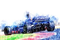 Illustratie van een serie legendarische Formule 1-racers en hun coureurs. Ontworpen uit liefde voor het klassieke racen. Geschilderd met aquarellen op papier.