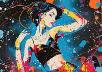 Details: vrouw, silhouet, urban, street art, dynamisch, energie, blauw, roze, geel, zwart, Pop of Colour