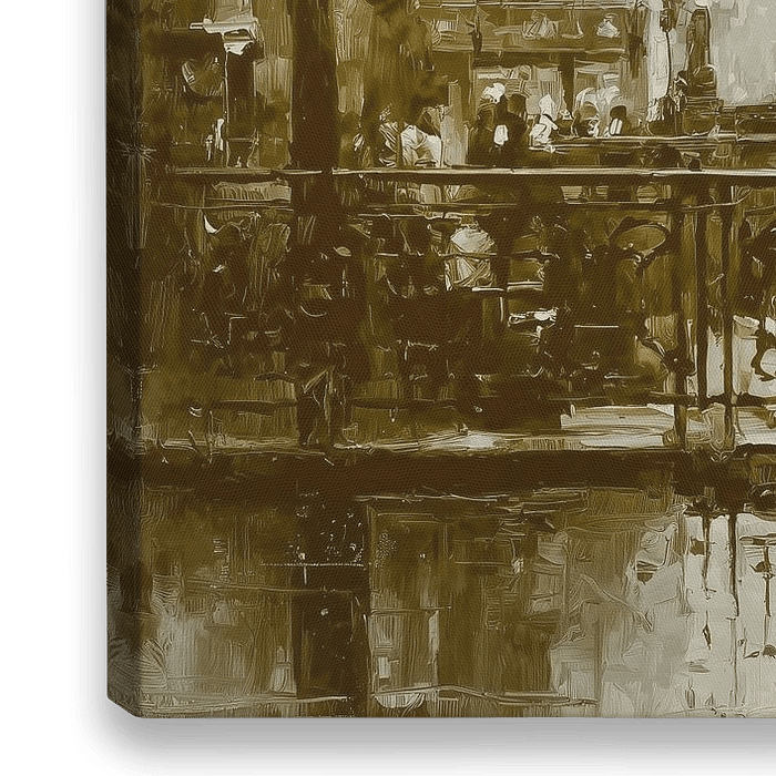 Een kunstwerk van een sierlijke ballerina die danst op een brug over de Seine, op de achtergrond is het stadsgezicht van Parijs te zien met zachte, wazige contouren van gebouwen. De algehele stijl doet denken aan klassieke schilderijen, waarbij elementen van het impressionisme worden gecombineerd met een nostalgische, dromerige sfeer.…
