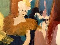 Dit mixed media werk is baseerd op het werk van Henri de Toulouse-Lautrec:  "The Clownesse Cha-U-Kao at the Moulin Rouge , 1865". Parijs.