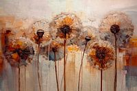 Dandelion veld: Een modern werk van een sfeervolle groep paardenbloemen in volle glorie.