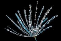 Een enkel zaadje van de Taraxacum Offinale, beter bekend als de paardenbloem vangt kleine waterdruppeltjes en houdt ze vast.