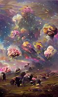 Met sterrenstof wolken en buitenaardse grazers op de voorgrond.