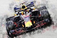Illustratie van een serie legendarische Formule 1-racers en hun coureurs. Ontworpen uit liefde voor het klassieke racen. Geschilderd met aquarellen op papier.