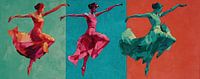 Details: dans schilderij, vrouw schilderij, kleurrijk schilderij, abstract schilderij, beweging, dans, elegant, roze, aqua, moderne kunst