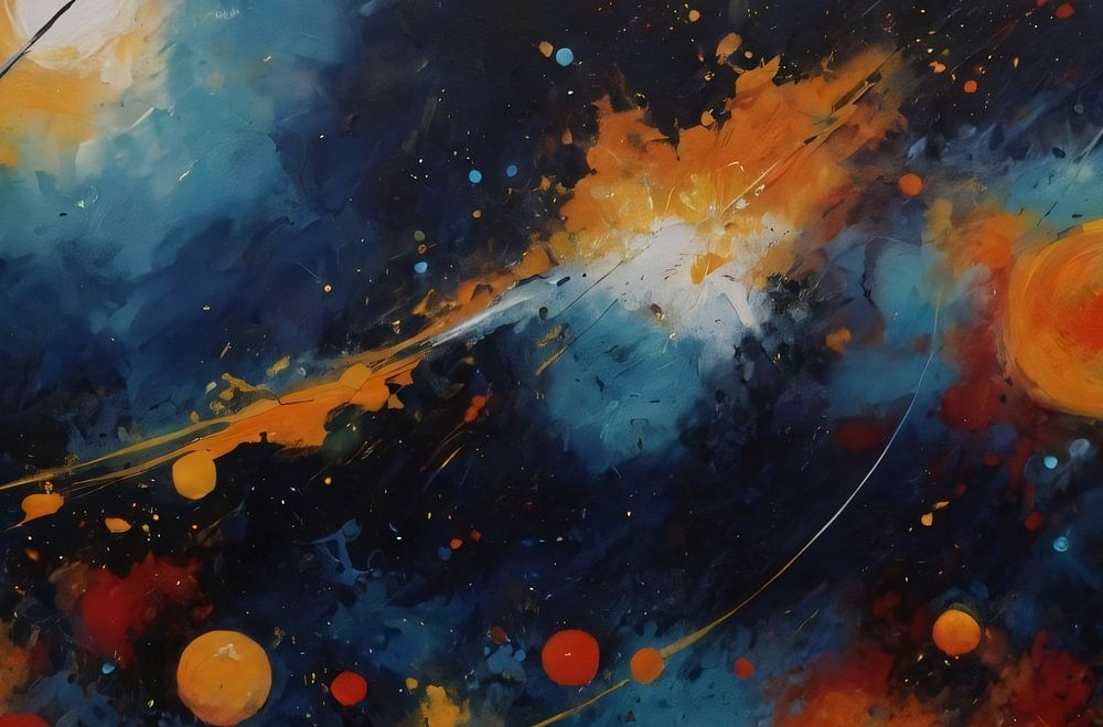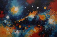 Dit schitterende stuk brengt de kosmos tot leven op uw muur, waar de wervelende dans van kleuren en licht het oog direct vangt. Explosies van rood, blauw, en geel spatten van het doek af, terwijl delicate spetters van wit licht de sterrennacht imiteren. Een dynamische afspiegeling van het universum, dit schilderij is een ode aan de oneindige schoonheid van de ruimte en brengt diepte en levendigheid in elke kamer. Ideaal voor de liefhebber van moderne kunst die een statement wil maken, dit werk zal niet onopgemerkt blijven en stimuleert de verbeelding met zijn abstracte weergave van het heelal.
