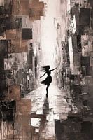 Dans in Fragmenten verbeeldt een moment van bevrijding te midden van een gefragmenteerde wereld. In het hart van een abstracte, stedelijke compositie beweegt een vrouwelijke silhouet zich licht en vrij, alsof ze danst tussen herinneringen, indrukken en contrasten. De omgeving bestaat uit ruwe, gelaagde vlakken van zwart, grijs en…