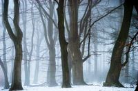 Deze bomen hebben mij waarschijnlijk mijn hele leven al voorbij zien komen, maar nog nooit zagen ze er zo betoverend uit als op deze winterochtend, toen er nergens in het land sneeuw lag, behalve op deze plek. Dooi was al op komst, wat een dichte mist veroorzaakte. De sneeuw veranderde in ijs en een vrouw die mij met haar hond passeerde zei : vind je dit nu niet vreselijk ? Ik lachte en antwoordde dat dit voor mij een droom was. Deze beukenbomen zagen er geanimeerd uit in hun witte, koude omgeving, alsof ze met elkaar communiceerden. De mist voegde de nodige diepte toe aan de scène met andere bomen die in het niets verdwenen