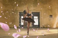 "Dans met Rozen": In dit beeld wordt een betoverende scène gecreëerd waarin een prachtige ballerina met een donkere huidskleur danst in een verlaten gebouw, omringd door kleurrijke rozenblaadjes. De combinatie van het vervallen gebouw en de geurende bloemblaadjes vormt een fascinerend contrast dat de kijker direct aantrekt.