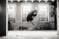 Vrouw danser industrieel ringers fabriek sprong ballet moderne dans tegenlicht
