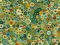 Dit werk toont een ritmisch spel van zeshoeken in een palet van aardetinten, diep groen en okergeel. De patronen zijn compact maar speels, alsof ze in een continue beweging verkeren – als een veld vol organische cellen die hun eigen ordening volgen. De abstractie wekt een gevoel van verbondenheid met de natuur zonder iets letterlijk…