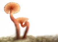 Danse Fragile, heb ik dit fotowerk genoemd vanwege de tere lichtdoorlatende paddenstoelhoedjes en het zachte bewegen van de steeltjes.