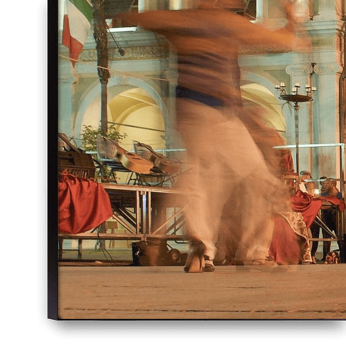 Op een plein aan het Gardameer komen iedere avond mensen samen om muziek te maken en te dansen. De beweging van de dans en het prachtige gebouw maken het tot een een dromerig geheel. De toeschouwers staan op afstand maar zijn toch ook onderdeel van het geheel.