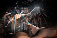 Dit beeld is gemaakt tijdens lichtfestival LUNA 2024 in Leeuwarden, het uitgangspunt is een dansende etalagepop die ik had gezien. De sterke vorm inspireerde mij om het te combineren met een aantal mooie foto's die ik die avond had gemaakt.