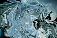 Abstract werk met de kleuren blauw, grijs en zwart.