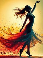Deze prachtige foto legt de essentie van beweging, emotie en gratie op een unieke manier vast. Het vertelt een verhaal van passie en kracht, waarbij de vloeiende lijnen van het lichaam harmonieus samengaan met de energie van de dans. De fotografische compositie zijn zorgvuldig gekozen om zowel de technische perfectie van de dans als de expressieve vrijheid te benadrukken, waardoor elk beeld een krachtige emotionele lading krijgt.