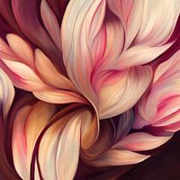 Kleurrijk, botanisch, abstract schilderij met prachtige kleurschakeringen.