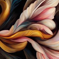 Kleurrijk, botanisch, abstract schilderij met prachtige kleurschakeringen.