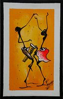 Afrikaanse kunst van de Togolese autodidacte kunstenaar Fauczy van Faczy Art. Een veelzijdig kunstenaar die naast zijn spirituele werk ook meer Afrikaanse taferelen schildert.