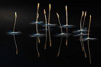 Zaadjes van de paardenbloem, of ook wel de Taraxacum Officinale spiegelen zich in een kom van water.