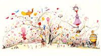 De bomen zijn geen gewone bomen, maar dienen als ankers voor een verscheidenheid aan bonte personages, die lijken te zweven en dansen tussen de takken. Van…