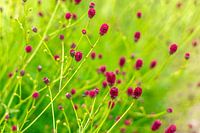 Als ik naar dit abstracte fotowerk van roodpaarse Trommelstokjes (Allium Sphaerocephalon) kijk, word ik meteen betoverd door de levendige kleuren en de delicate schoonheid van de natuur. De bloemen, klein en bolvormig, lijken bijna te dansen op hun dunne groene stelen tegen de zachte, wazige groene achtergrond. Het contrast tussen de rijke roodpaarse tinten en het subtiele groen creëert een visueel spektakel dat zowel rustgevend als opwindend is.