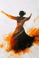 Dit schilderij vangt de essentie van beweging en expressie in een abstracte, dynamische compositie. Het silhouet van een dansende figuur, gehuld in warme tinten oranje, zwart en wit, straalt energie en elegantie uit. Perfect als blikvanger in een moderne woonkamer of een inspirerende kantoorruimte, dit kunstwerk voegt een vleugje…