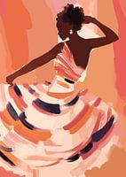 Een schilderij van een dansend zwart meisje in een jurk