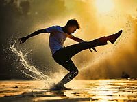 Koop de foto Dansende man in het water van The Photo Artist als print op canvas, aluminium dibond, (ingelijste) fotoprint, behang en ArtFrame. Voor jou op maat geprint in Fine-Art kwaliteit.