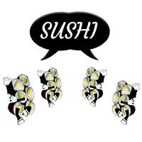 Dancing sushi cartoon with speech bubble saying “sushi.”「寿司」と書かれた吹き出しを持つ踊る寿司漫画。 すし, 寿司, 鮨