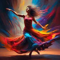 Deze prachtige foto vangt de essentie van beweging, emotie en elegantie op een unieke manier. Het beeld vertelt een verhaal van passie en kracht, waarbij de vloeiende lijnen van het lichaam naadloos samengaan met de dynamiek van de dans. De compositie is zorgvuldig gekozen om zowel de technische beheersing van de dans als de expressieve vrijheid te benadrukken, wat elk beeld een intense emotionele lading geeft.