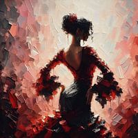 In dit betoverende olieverfwerk staat een Spaanse flamencodanseres stil, gevangen in een moment van intense concentratie. Haar houding straalt kracht, trots en innerlijke rust uit. De rijke kleuren en verfijnde details brengen de sfeer van de Spaanse traditie tot leven. Zelfs in stilstand voel je de spanning van de dans. Een krachtig eerbetoon aan stilte vóór de storm.